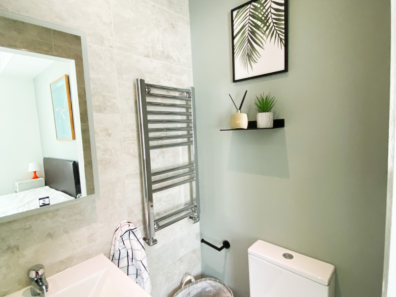 Large furnished double room Recently Redecorated with new floor and new private en suite shower room. Bright, modern, and one of the best rooms in the house.