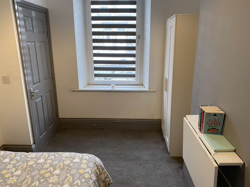 A spacious double room on the ground floor, sharing a clean, modern bathroom with one other tenant.