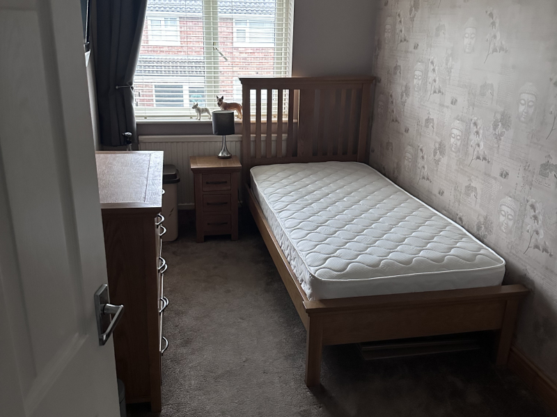My 3 bedroom home is a terraced house with a front and rear garden and I like my home kept clean and tidy. This is in a quiet area of Corby and there is public transport available