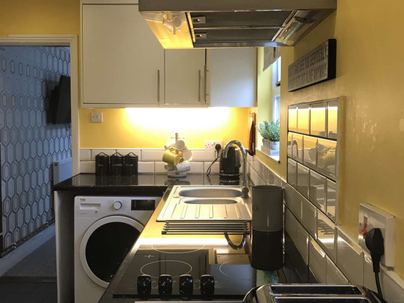 There is one shower room and one bathroom with bath and shower, both of which are on the middle floor away from bedrooms 3 and 4, so perfectly situated. There is another toilet on the ground floor, a communal kitchen/diner (equipped with a table to seat six, two fridge freezers, oven, hob, two washer/dryers, microwave, kettle and toaster) and lounge area with large corner sofas/seating area and a large flat screen TV with free sat.