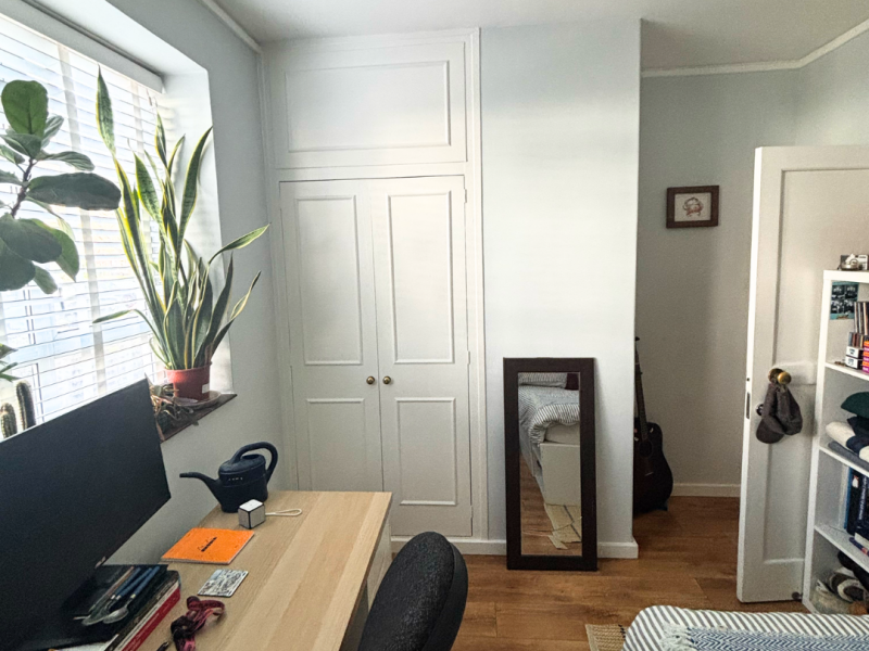 The room itself is a good-sized double, with bed, ideal for a professional looking for a well-located, easygoing home in Zone 1. Wardrobe space & room for a desk for those seeking to WFH.